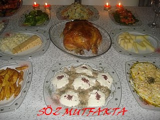 Yılbaşı masamızdan yeni bir lezzet… Tarifini karşı komşum Nazandan aldım, biraz tereddüt ederek yaptım ama harika oldu hatta tavuğu yemekten masadaki birçok salata ve mezenin tadına bile bakmadık.