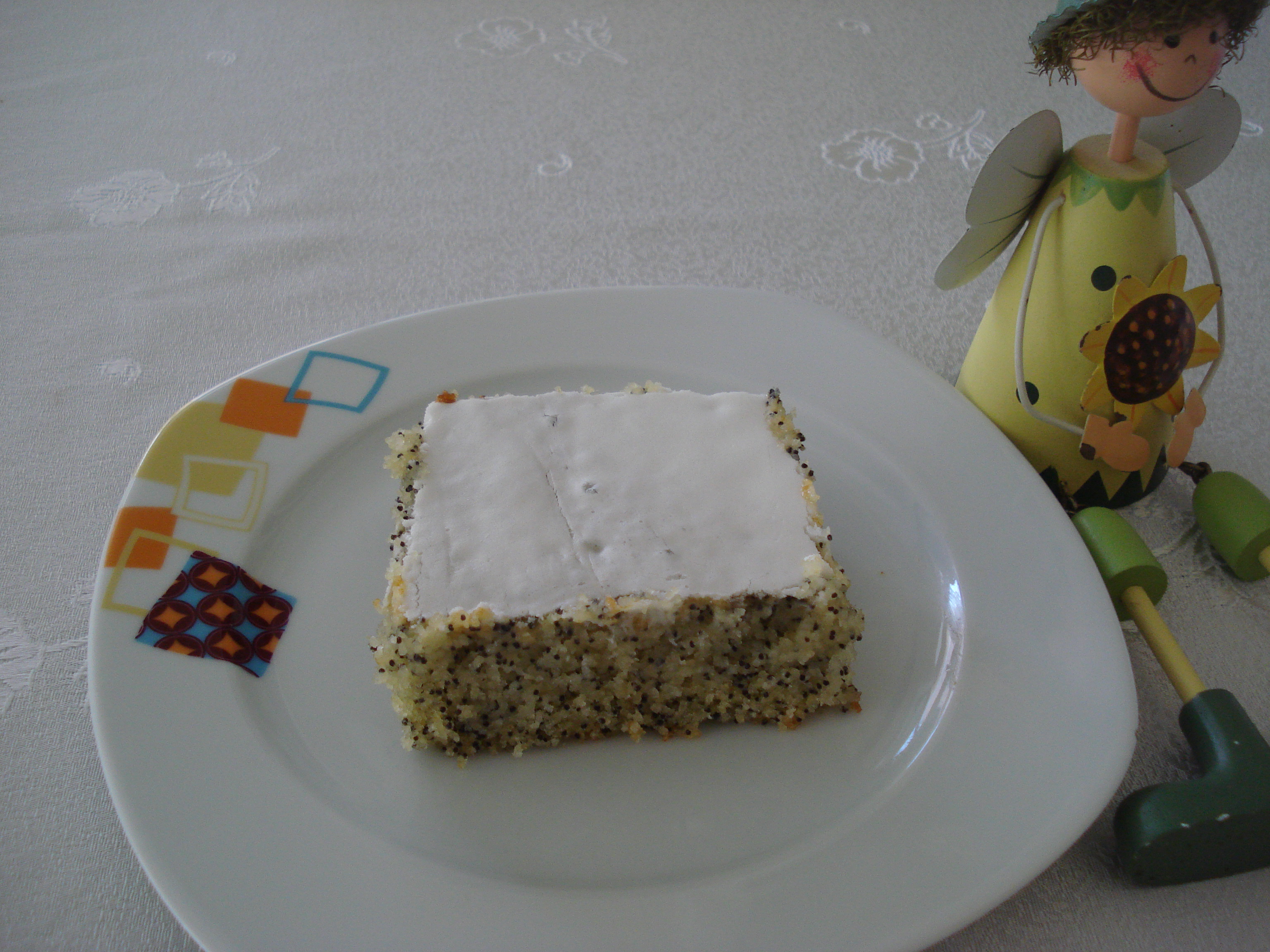 3 yumurta ve pudra şekerini çırptıktan sonra sıvıyağ, süt, irmik, mavi haşhaş, un ve kabartma tozunu ekleyip karıştıralım. Bu sıvı karışımı yağlanmış dikdörtgen borcam tepsisine döküp 180 derecelik fırında hafif kızarıncaya kadar pişirelim.